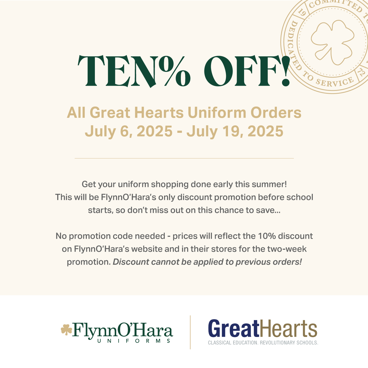 FlynnO’Hara Uniforms – Great Hearts 10% Discount Promo – SOCIAL POST